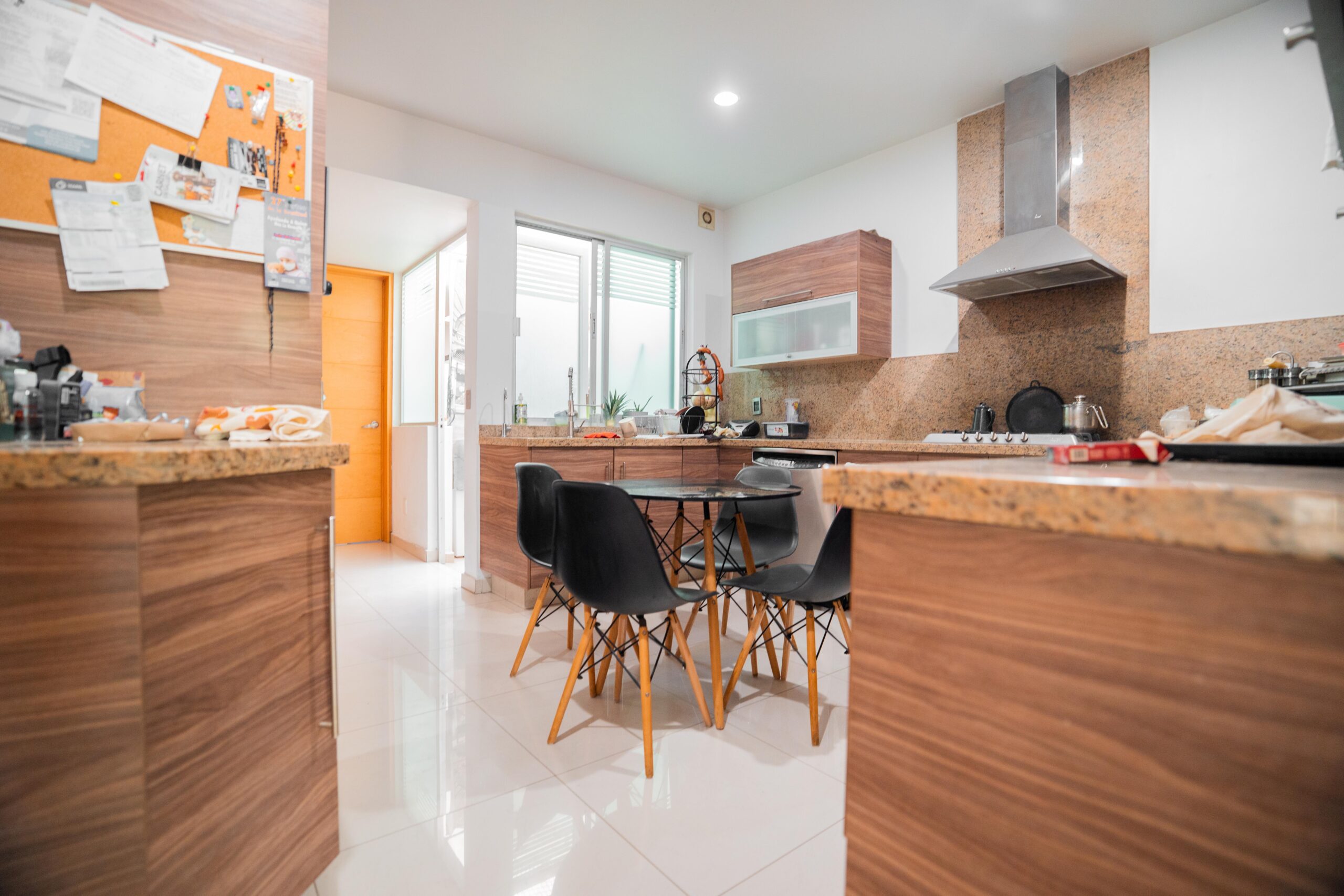 Dispone de 5 recámaras, 2 de ellas con vestidor y baño completo, además de estudio, cuarto de servicio y patio de servicio. Las áreas sociales se integran de manera armoniosa con la terraza y el jardín, ideales para la convivencia diaria.