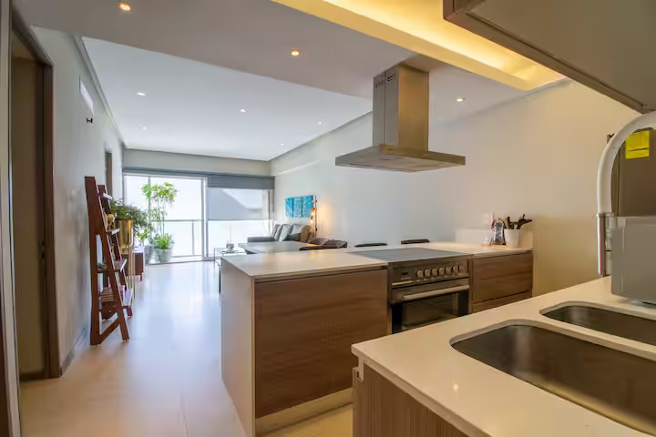 Este departamento cuenta con 2 estacionamientos, cocina integral, terraza y aire acondicionado, en excelentes condiciones.